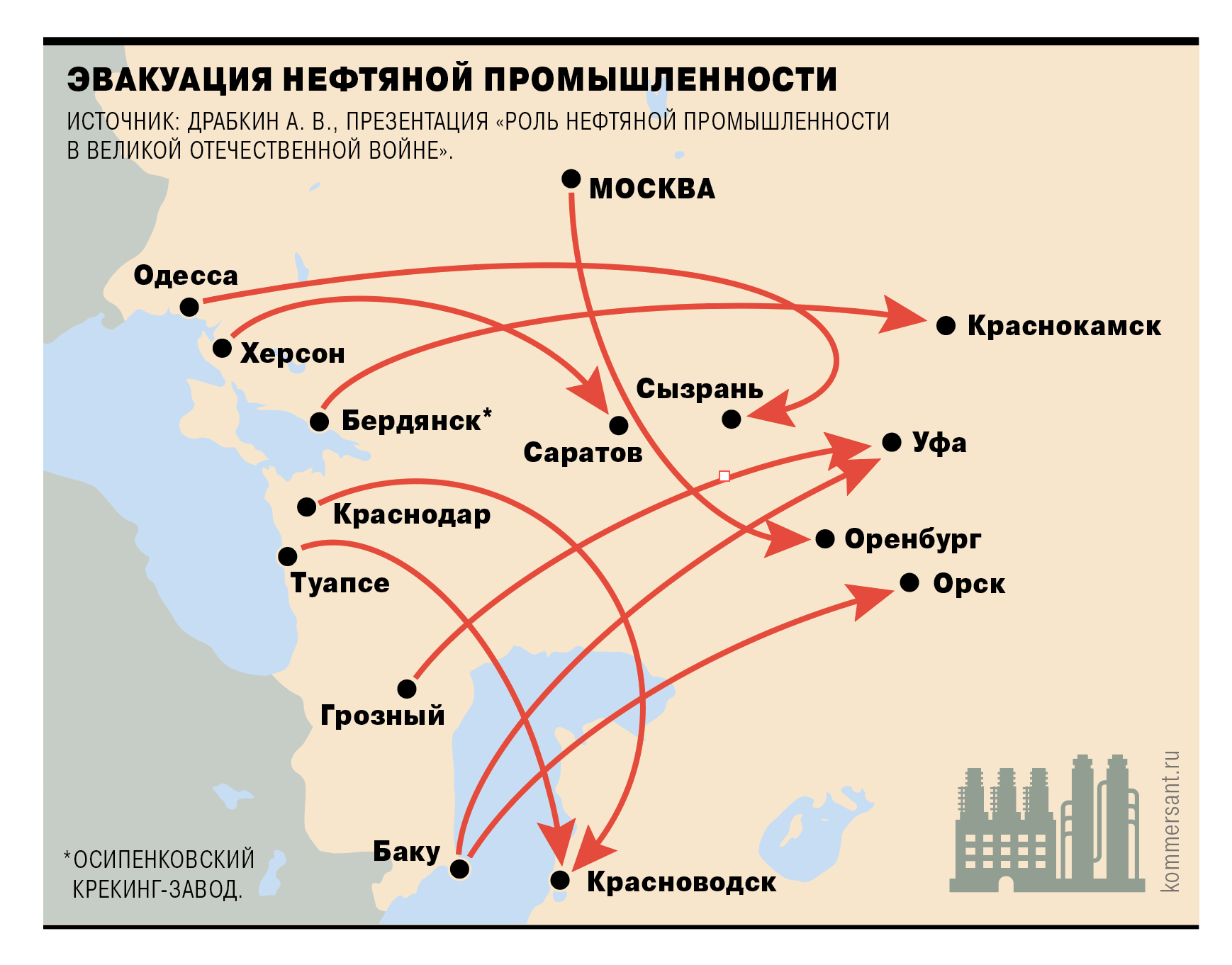 нефтеперерабатывающем заводе имени Сталина. В условиях войны такое размещение