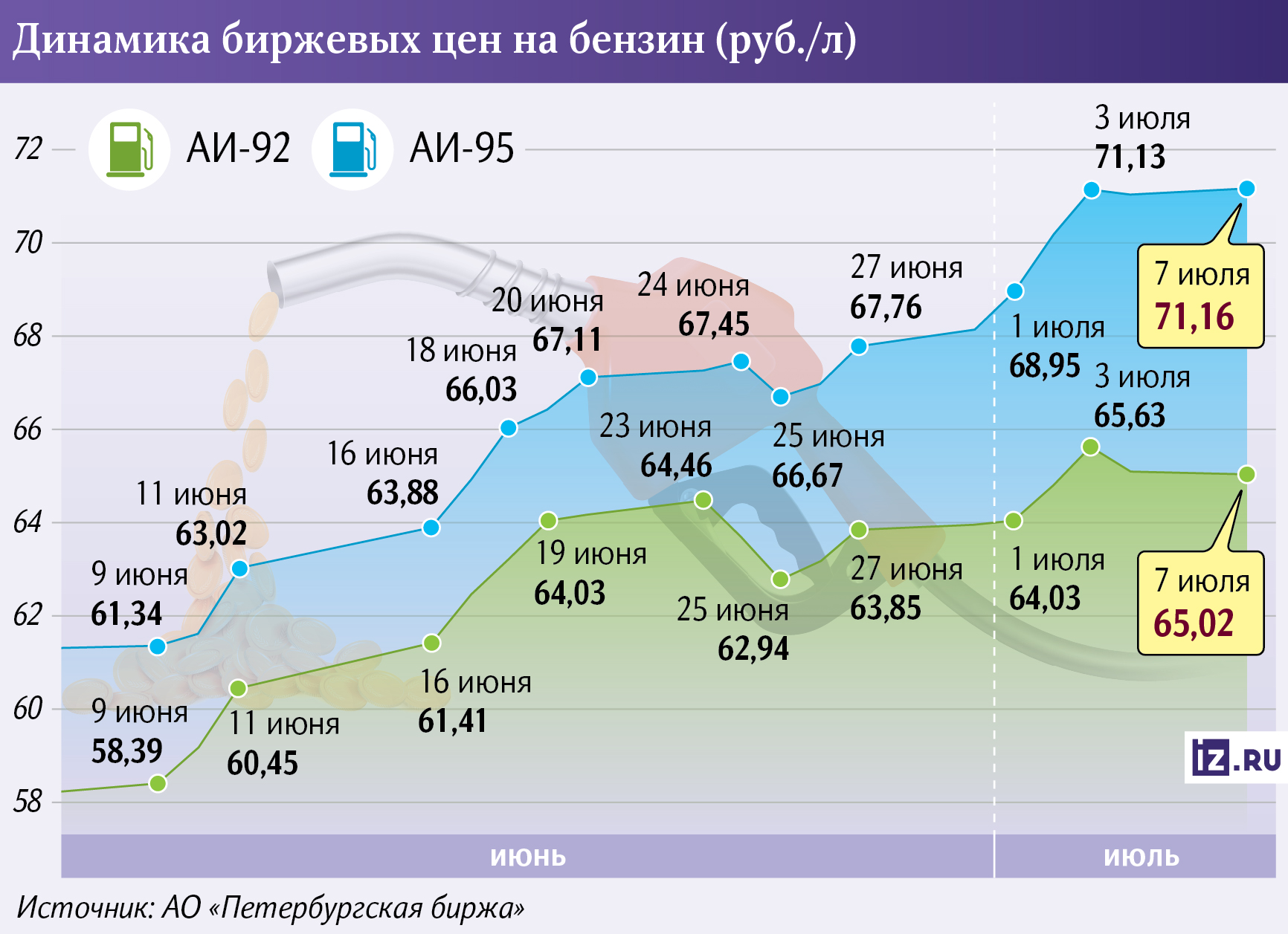выросла в цене за первый летний месяц. Если с мая по июнь рост цен на АИ-92 и